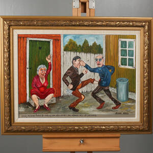 Konstnär född: 1918 "Nä hör nu, husse å matte! tror ni att jag ljuger!" Signerad: Alvar Hård Fingeravtryck samt ett skrivet intyg a tergo Mått Läs mer...