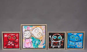 Figurkompositioner af Maya Dalo, akryl på lærred. Sign. Maya Dalo. Henholdsvis to stk. 20 x 20 cm (24 x 24). Samt to stk. 30x20 (34x24) Läs mer...