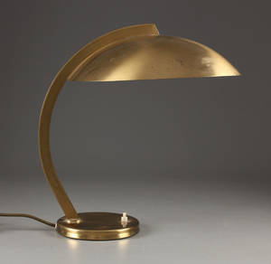 Bordlampe, af Vilhelm Lauritzen (1894-1984) for Louis Poulsen, bordlampe med stamme af messing, fod og skærm af hvid lakeret metal. H. 38 cm. Fremstår i Läs mer...