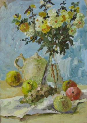 Unbekannter Künstler, Stilleben mit Schale, Öl auf Leinwand, 1912, unleserlich signiert und datiert, 43 x 64 cm. Läs mer...