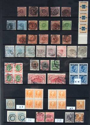 Danmark. Parti på 19 plancher, bl.a. flere skillingsmærker, posthuse, Gl Luftpost og mange bedre, fra bogtryk, og frem også miniark, m.m. Høj katalogværdi. SE FOTO af alle sider (19)