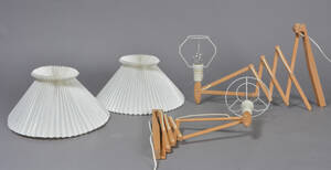 Erik Hansen. Sakselampe/væglampe af egetræ, model 324. Fremstillet hos Le Klint. H. 31,5 cm. Brugsspor. Kaare Klint / Le Klint, model 306, Kip bordlampe / Läs mer...