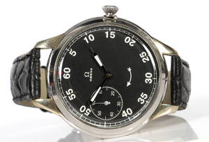 Omega. Vintage herreur i stål fra ombygget lommeur, ca. 1936