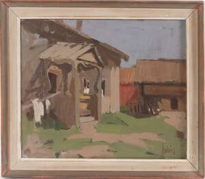 Olja på duk, gårdsbild. Signerad. (49x60)