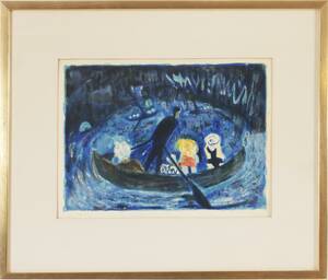Färglitografi, figurer i båt. Signerad. Inramad. Bladet något gulnat. (30x42)
