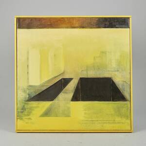 Oidentifierad konstnär, komposition, ej signerad. Olja på duk, yttermått inklusive ram: 52x52 cm.