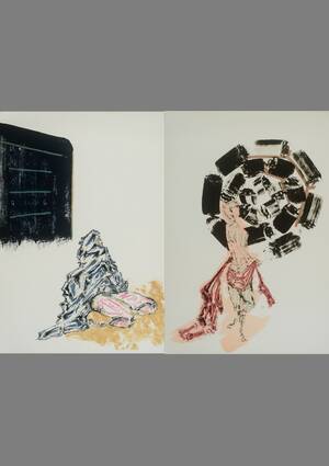 To erotiske kompositioner af Frans Kannik (1949-2011), litografier, usign samt unummeret. Mål. 90 x 60 cm. Uindrammet. (2) Proveniens: Familiens eje, boet efter Frans Kannik. Den danske serigraf og kunstner, Frans Kannik, var i 1980erne en af de grundlæggende kræfter i kunstnerkollektivet Leifgade 22, og var medlem af Kunstnersammenslutningen Grønningen indtil sin død i 2011. Kannik søgte igennem hele sit grænsesøgende œuvre, at indfange den menneskelige erotiske- og sanselige krop. For Kannik var det særligt de små anatomiske skævheder og forskydninger - der igennem hans hurtige arbejdsform - opstod i hans figurer, som havde en særlig interesse. Gennemgående for Kanniks værker er, at figurerne ofte forholder sig til en collagebund, arkitektur eller en anden forarbejdet baggrund. Dette værk er en del af Lauritz.coms temaauktion fra boet efter Frans Kannik. Se alle værkerne her