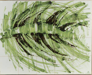 Royal Copenhagen. Relief af porcelænskakler, dekoreret i grønt og sort. Monteret i ramme af bronze. 62 x 78 cm. Signeret.