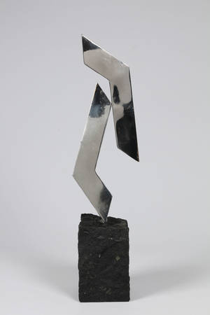 Jens E. f. 1965 cd. Almost. Skulptur i rustfrit stål monteret på granit sokkel. Sign. J.E. Str. H. 56 x B. 12 x B. 12 cm.