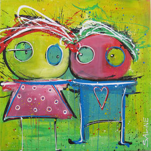 Saline. Figurkomposition, Happiness is not about getting what we want...its about appreciating what we have, akryl på lærred. Sign. Saline. 100 x 100 cm. Läs mer...