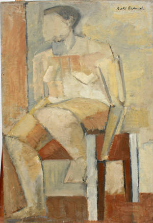 BERTIL ÖHLUND (1923-2003): 2 dlr, Komposition med sittande figur, signerad samt daterad 1965, bok om konstnären medföljer, olja på duk, ca 88x115 cm. Boken med Läs mer...
