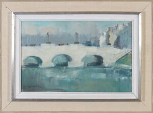 Oljemålning på duk. Bro över Sein. 33x51 cm.