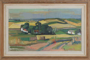 Oljemålning på duk. Åkerlandskap. 43x73 cm.