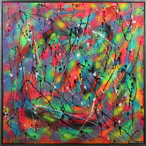 Allan Vonsild f. 1961. Komposition, akryl på lærred, sign. og dateret på bagside. 100x100 cm. (104x104 cm.) Allan Vonsild er autodidakt kunstner, der har malet siden 2008. Allans værker er primært store billeder malet i abstrakt stil med stærke farver.