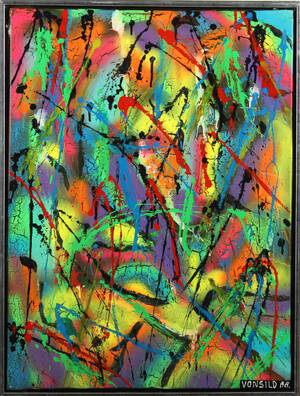Allan Vonsild f. 1961. Komposition, akryl på lærred, sign. og dateret på bagside. 60x80 cm. (64x84 cm.) Allan Vonsild er autodidakt kunstner, der har malet siden 2008. Allans værker er primært store billeder malet i abstrakt stil med stærke farver.