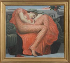 Ubekendt kunstner. Olie på lærred. Sovende kvinde, usign. 40 x 45 (48 x 53) cm.