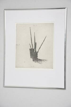 Curt Fors (f. 1935), Sverige. Form och två askfat. Monogramsignerad. Blandteknik, bildmått: 43x32 cm, yttermått inklusive ram: 65x52 cm. Curt Fors, född 1935, svensk målare, Läs mer...