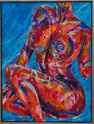 Antoni Adamski f. 1955 cd. Antoni Adamski. Komposition med model. Akryl på lærred. Mål 80 x 60 cm (84x64) Se kunstnerprofil her