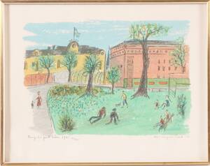 Färglitografi, "Berzelii park våren 1975". Signerat och numrerat. Inramat. (35x52)