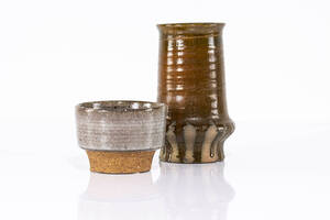 stengods, signerade, 2 st etikettmärkta, Hb 11,5 och 13,5 cm. (Vitrin III) Läs mer...