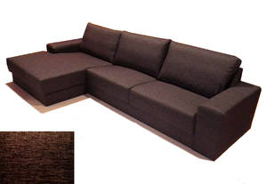 Dansk design. Sofa med chaiselong. Stående på mørke træben. Komposition: Fast sæde med 35kg 160 neuton på nozagfjedre, hynder med granulat og fibervat. Polstret med kraftigt møbelstof. L. ca 305cm, H. ca 82cm, D. ca 85/150cm. Fremstillet i EU. Leveres i original emballage, 2 colli.