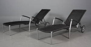 Avslutade auktioner liknande Par solvogne i 3 mm sort polyrattan, incl. hynder. (2)