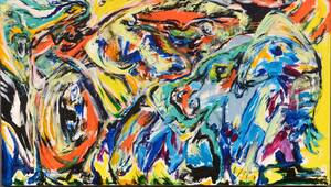 Komposition af Per Eli (f. 1957), akryl på lærred, sign. Per Eli. 80 x 130 cm. (84 x 134 cm.) Läs mer...