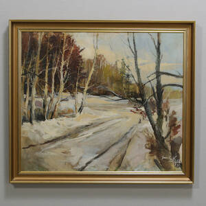 Olja på duk, vintermotiv, otydlig signatur, mått 95*82 cm.