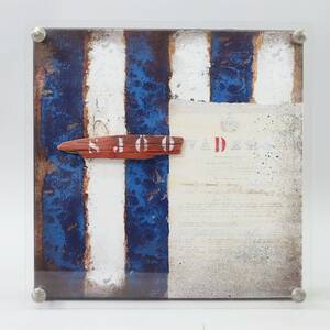Otydligt signerad blandteknik/collage 31 X 31 H=7