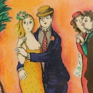 Lennart Jirlow (1936-2020), Sverige. Signerad, numrerad 35/310, Dansande par. Färglitografi, bildmått: 50x38 cm, yttermått inklusive ram: 68x51 cm. Lennart Jirlow, svensk bildkonstnär född i Stockholm Läs mer...