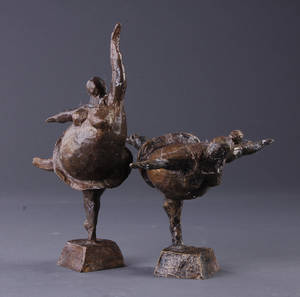 To skulpturer af støbt bronze i form af ballerinaer, med runde former stående i forskellige positurer. Højde op til 26 cm.(2)