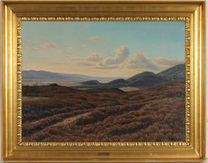 Emil Wennerwald 1859-1934. Landskabsparti med bakker og sø. Olie på lærred. Sign. E Wennerwald og vistnok 1901. 76 x 121 cm (95 x 141 cm). Läs mer...