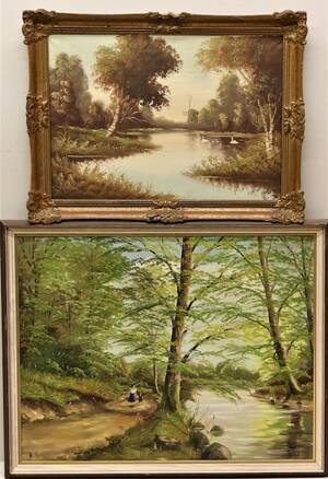 Landskapsmålningar 2 st, olja på duk, oramade, oidentifierade konstnärer, 62 X 51 cm Läs mer...