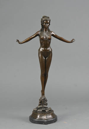 Bronzefigur forestillende kvinde i erotisk positur