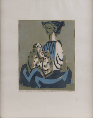 Ubekendt kunstner. 1900- 2000 tallet. Komposition med figurer og træer i landskab. Litografi, utydelig sign. 44 x 42 cm. ( 66 x 62 cm.) Läs mer...