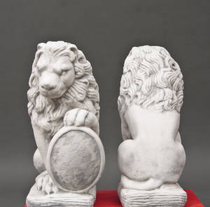 Avslutade auktioner liknande Haveskulpturer. Par løver med skjold (2)