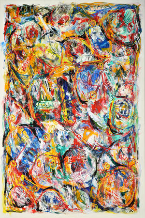Egon W. Nielsen. 'Maskebillede 1b', akryl på lærred, sign. monogram EWN. 150 x 100 cm.