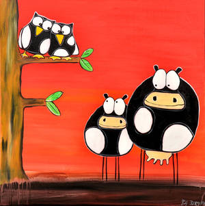 Pia Birgitte Stenderup, f. 1968. Komposition med fugle. Sign. Pia Birgitte. Akryl på lærred. 60 x 60 (62 x 62) cm. Läs mer...
