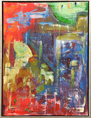 Annette Jensen. Komposition. Akryl på lærred. Sign. AJ. 80x60 cm (84x64) cm.