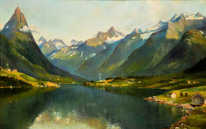 Ubekendt kunstner. Norsk fjordparti, olie på lærred, usign. 46 x 71 cm.