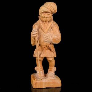 Träskulptur föreställande en stående same med stav. Monogramsignerad: BJ Höjd: 19,5 cm Konditionsrapport: Åldersbaserat slitage, inga övriga anmärkningar. ------------------ Sculpture Wood from the 20th century. Wooden sculpture in the form of a standing sami with stick. Monogram signed: BJ Height: 19.5 cm Condition report: Age-based wear, no other remarks.