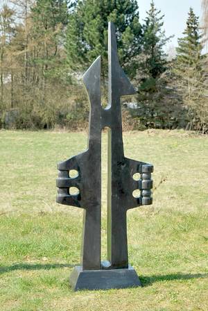 Abstrakt skulptur i håndhugget sort marmor. H. 120cm. Vægt ca. 250 kg. Modelfoto Läs mer...