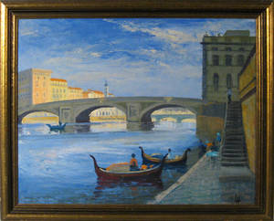 Ubkendt maler. Olie på lærred. Motiv fra Venedig. Signeret. 53x68 cm.