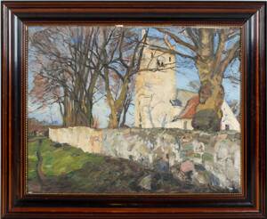 Kyrka, olja på duk, ca 92x72 cm