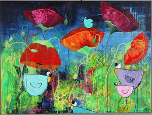 Lene Lykke. f. 1961. Valmuer samt høns.. Akryl på lærred. Sign. Lykke. Valmuer 60 x 60 cm. UR. Høns 20 x 20 cm ( 24 Läs mer...
