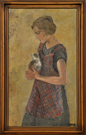 Avslutade auktioner liknande Dansk maler, 1900-tallet, parti med kvinde og kat, olie på lærred, sign