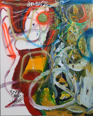 Lars Fantasiformidler Elgidh, født 1973. Abstrakt dobbeltkomposition, diptykon, betitlet "Farvekussen blomstrer" og tilegnet Jens Jørgen Thorsen, akryl og spray på lærred. Sign. og dateret Lars Läs mer...