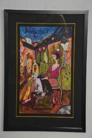 Angelica Wiik (f. 1960), Sverige. Signerad, färglitografi, Flicka med fiol, 59x38 cm, yttermått inklusive ram: 67x47 cm. Angelica Wiik, svensk målare född i Stockholm 1960. Läs mer...