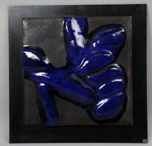 Abstrakt komposition, emaljearbejde på metal Inger Hanmann 1918-2007, sign. I. H. Komposition. 104,5 x 100 cm. (106x101,5) Fremstår med skrammer og afskalning langs kanter. Monteret Läs mer...