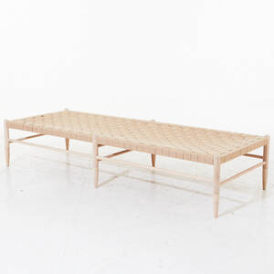 DAGBÄDD, samtida, vitoljad ek, naturfärgad sadelgjord, höjd ca 22, 200x78 cm, extra ben medföljer. 895151.